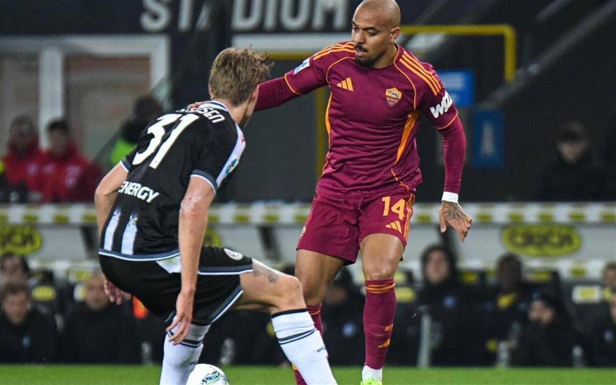 然而,比赛的进程和纸面实力的对比完全不符。 上半场,罗马空有54%的控球率,但踢得温吞水一样,毫无锐气。 45分钟里,他们只有区区3次射门,其中打在门框范围内的只有1次。 反倒是乌迪内斯,踢得简单直接,用5次射门制造了更多的实质威胁。 第17分钟,乌迪内斯的凯南-戴维斯就因为一次防守中的不满,吃到了黄牌。 第34分钟,他们的托马斯-克里斯滕森也领到一张黄牌。 这些片段拼凑起来,描绘出的画面是乌迪内斯用积极的跑动和略带侵略性的防守,成功地让罗马的进攻发动机熄了火。