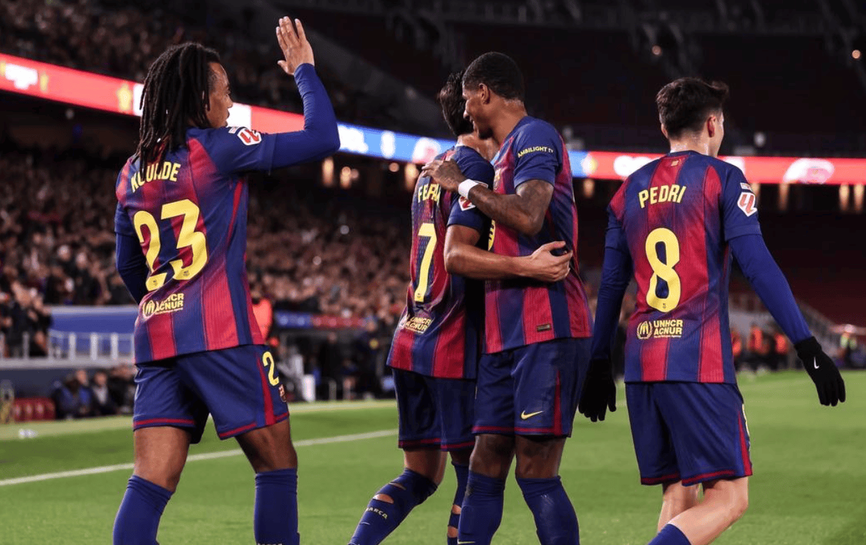 巴萨派出了常见的4231阵型,费兰·托雷斯出任最前面的攻击手。亚马尔、拉菲尼亚和拉什福德组成了锋线三叉戟,负责突破奥萨苏纳的防线。中场方面,埃里克·加西亚和佩德里搭档组成双后腰。防线上,孔德、库巴西、赫拉德·马丁和阿莱士·巴尔德担任四名后卫,组成稳固的防守体系。门将位置上,霍安·加西亚首发出战。替补席上则有莱万多夫斯基、德容和费尔明·洛佩斯等强劲的替补力量。比赛一开始,巴萨便掌控了场上节奏,不断给奥萨苏纳施加压力。第15分钟,亚马尔精准起脚传中,费兰·托雷斯迅速跑位,门前包抄准备射门,但遗憾地将球打高了。仅过了4分钟,佩德里带球内切,试图以一脚远射攻门,但球踢向了近角,门将稳稳地将球扑住。紧接着,加西亚也尝试了一脚远射,不过球稍稍偏出了目标。第25分钟,费兰·托雷斯头球攻门,虽然球打进了网,但由于越位在先,进球被判无效。接下来,第40分钟,费兰·托雷斯再次迎来好机会,他完成了一记倒钩射门,但球稍稍偏出,错失良机。上半场结束时,双方依旧没有进球,比分保持在0-0。下半场开始后,比赛继续由巴萨主导。第48分钟,拉什福德利用任意球机会直接射门,然而被奥萨苏纳门将神勇扑出。到了第68分钟,拉菲尼亚在中圈附近突然起脚远射,尝试吊门,却因为角度问题稍微偏离了目标。比赛进行到第70分钟时,巴萨终于打破僵局。佩德里送出精准传球,拉菲尼亚停球后立即起脚远射,皮球划出一道弧线,直入球门死角!1-0,巴萨领先了!虽然第85分钟时,埃兰多用凌空抽射破门,但因手球犯规,进球被判无效。然而巴萨的进攻并没有停歇,紧接着,拉菲尼亚再次展现出敏锐的门前嗅觉,在混乱中捡漏破门,完成梅开二度。最终,巴萨以2-0击败奥萨苏纳,拿下了这场比赛。表现最为出色的球员无疑是身价达到8000万欧元的拉菲尼亚,他的两粒进球帮助巴萨稳稳拿下比赛。凭借这一胜,巴萨已经迎来了联赛中的7连胜,积分达到了43分,继续高居积分榜首,领先皇马7分(皇马少赛一场)。如今,巴萨无疑是本赛季西甲冠军的最大热门。